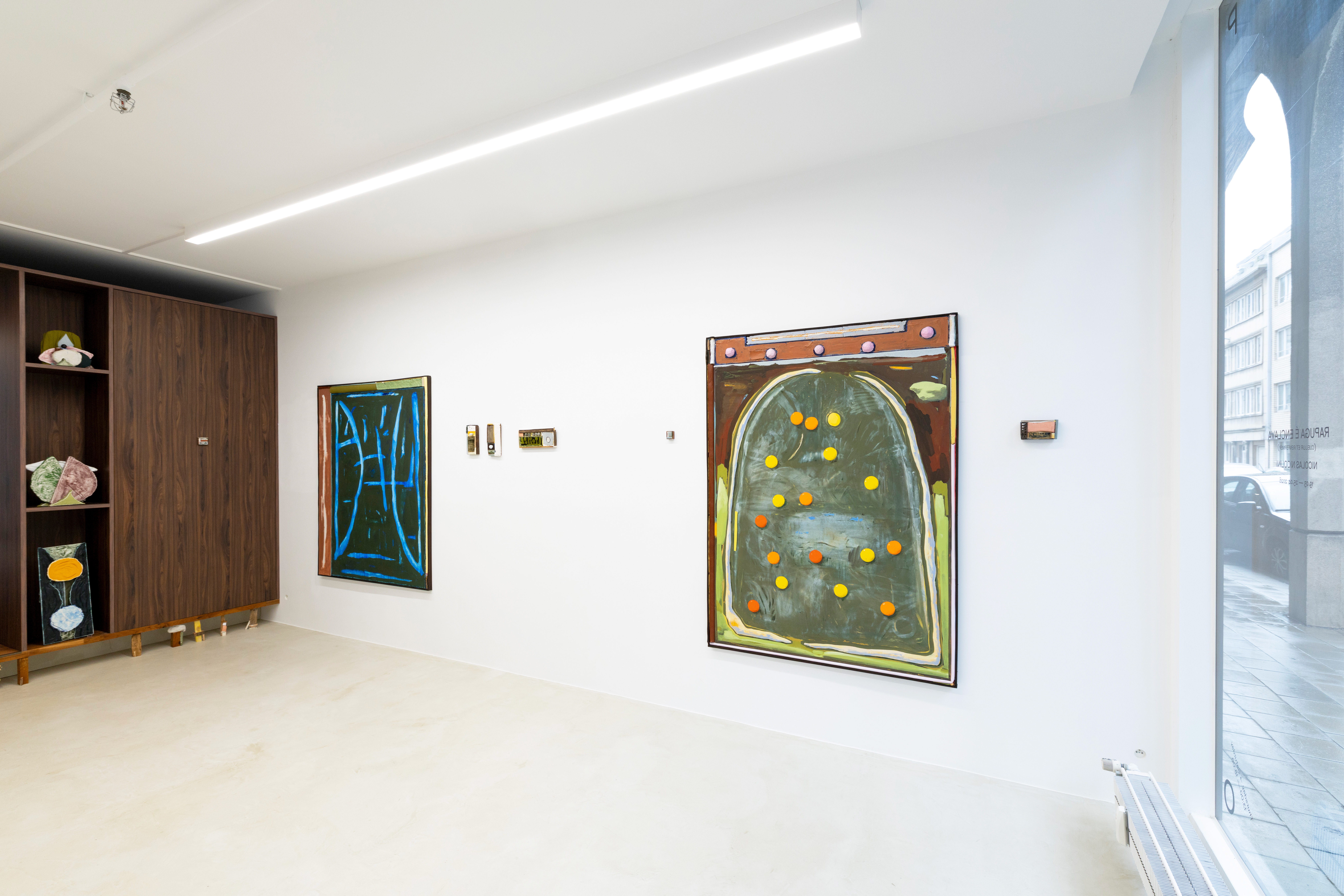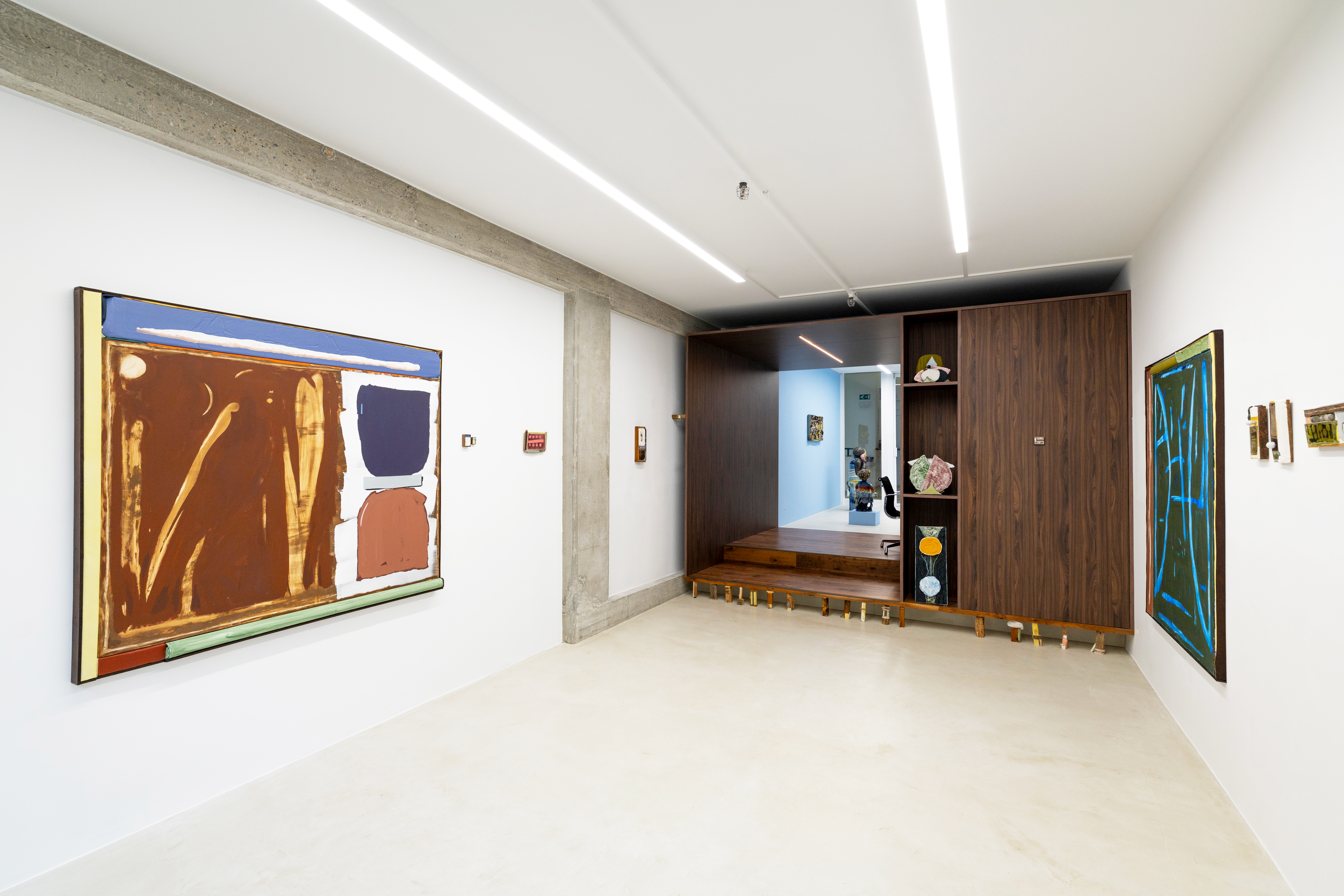 Then everything becomes possible: figuration, abstraction, paper, plaster, wood, ceramics; playful, focused, tense, absent; being comfortable with error and with discovery; resourcefulness as a working method. A sensitive worksite spirit, where a poetic and improvised organization of space coexists with the suitcase of departure, the drawer of memories, Grandma’s jewelry box, the workday bento, or the moving box.